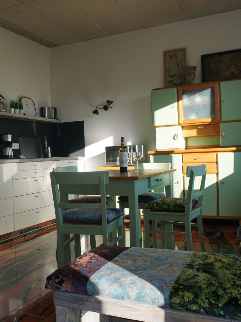 eigener Gartenbereich, mit Küchenkräutern - Zugang zu grüner Wildniss - überwiegend Massivholz-Möbel